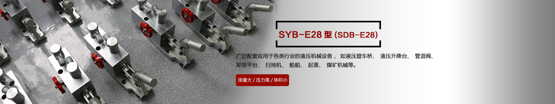 本產(chǎn)品SYB-E28型在本公司原有的SDB-E28型基礎(chǔ)上不斷改進(jìn)改良,廣泛應(yīng)用于各種行業(yè)的機(jī)械設(shè)備,如液壓登車橋、液壓升降臺、管道閥、卸貨平臺、掃地機(jī)、船舶、起重、煤礦機(jī)械等液壓機(jī)械設(shè)備上,效率高、結(jié)構(gòu)緊湊,深受客戶的歡迎...